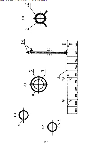 圖3為噴射管和吸油管的組合結構示意圖及其A-A,B-B,C-C,D-D剖面示意圖。