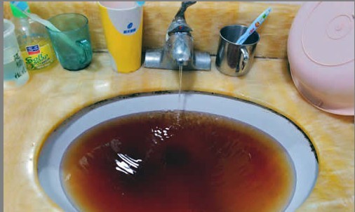 隨后,記者來到鮑先生家中,在衛(wèi)生間的洗臉池中,有一盆黑褐色像醬油一樣的水。“這還是中午接的水,放在這里沉淀了這么長時(shí)間,顏色都沒變。”鮑先生說,由于前天上夜班,他休息到昨天中午才起床。鮑先生本準(zhǔn)備洗漱做飯,一開水龍頭卻嚇了一跳,流出來的水又黃又渾濁,他只能用家里剩下的一點(diǎn)涼開水刷牙。“從發(fā)現(xiàn)自來水變色到現(xiàn)在幾個(gè)小時(shí)了,水還是臟的,也不知道是啥原因。”鮑先生當(dāng)著記者的面打開水龍頭,自來水水流很小,而且依然是黑褐色的。