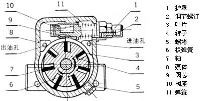 (4)為維持正常出油效率及壓力,可利用葉片泵上溢流閥的調節螺釘進行油路的壓力調節。